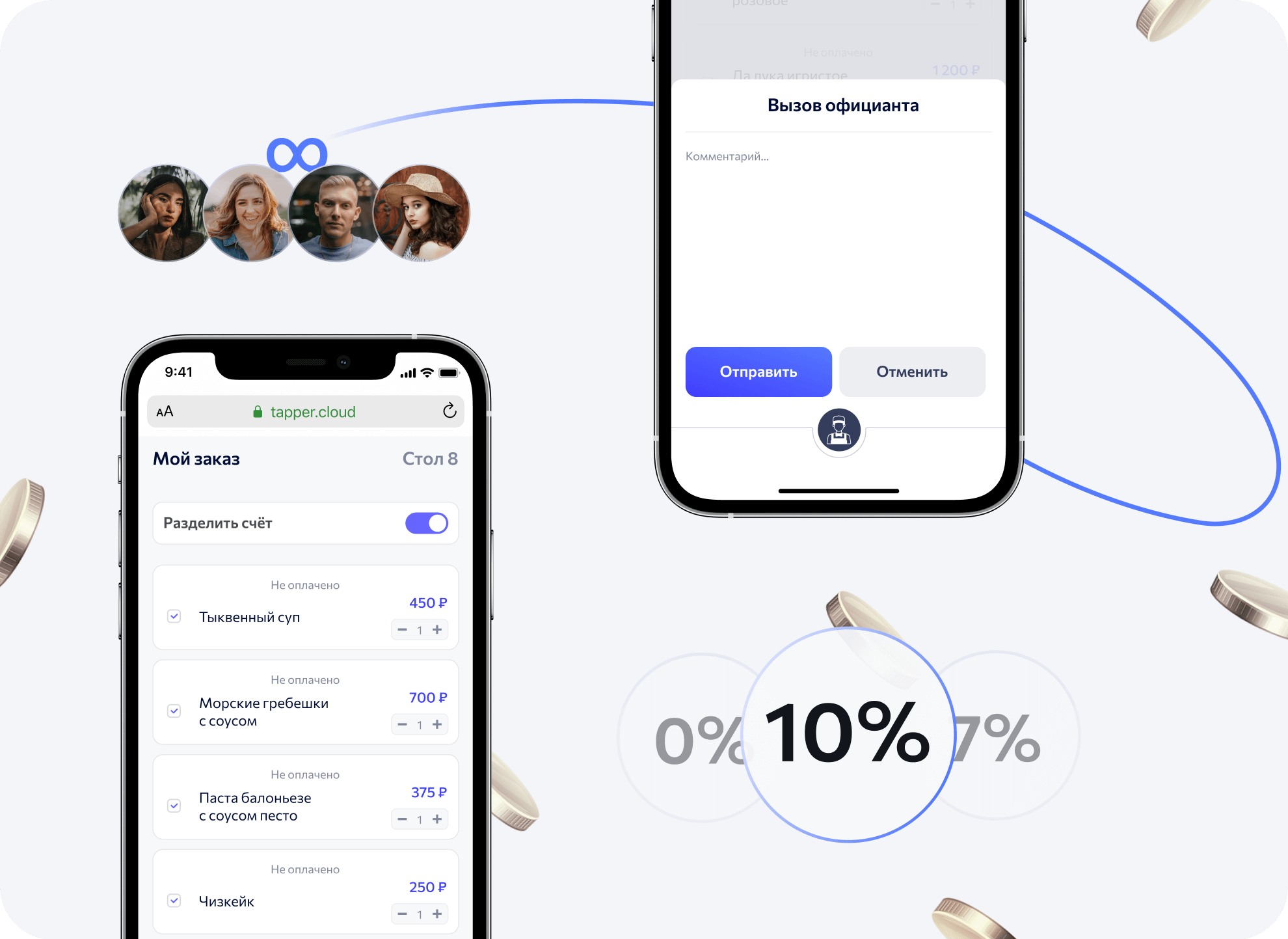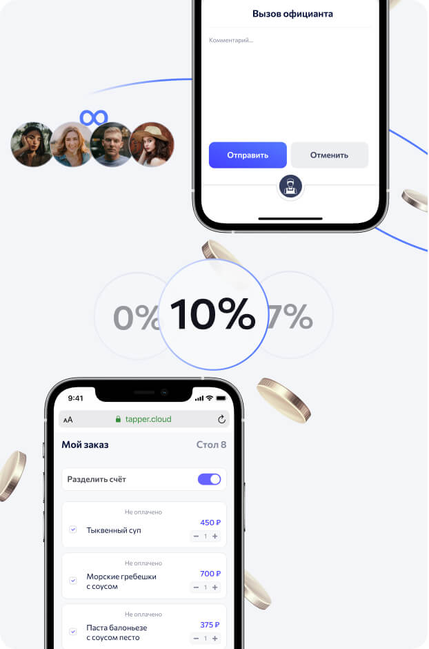 и чаевых в один клик в ресторанах
